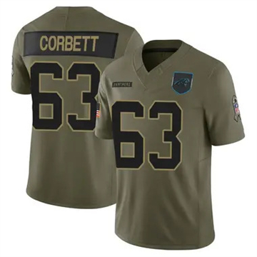Home Carolina Panthers Austin Corbett Carolina Panthers Youth Austin Corbett Vapor Limited 2025 Salute to Service Olive