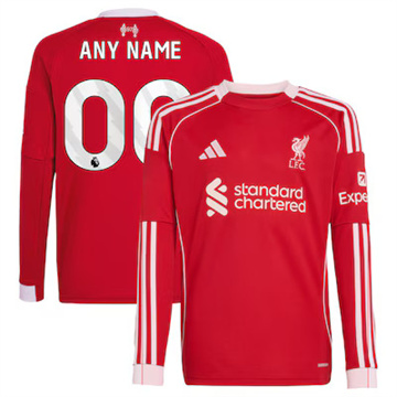 Home Liverpool Custom Men Liverpool Custom 2025/26 Long Sleeve Home Red Jersey