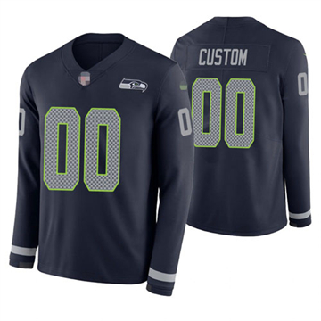 Home Seattle Seahawks Custom Seattle Seahawks Men Custom Therma Long Sleeve Navy Blue